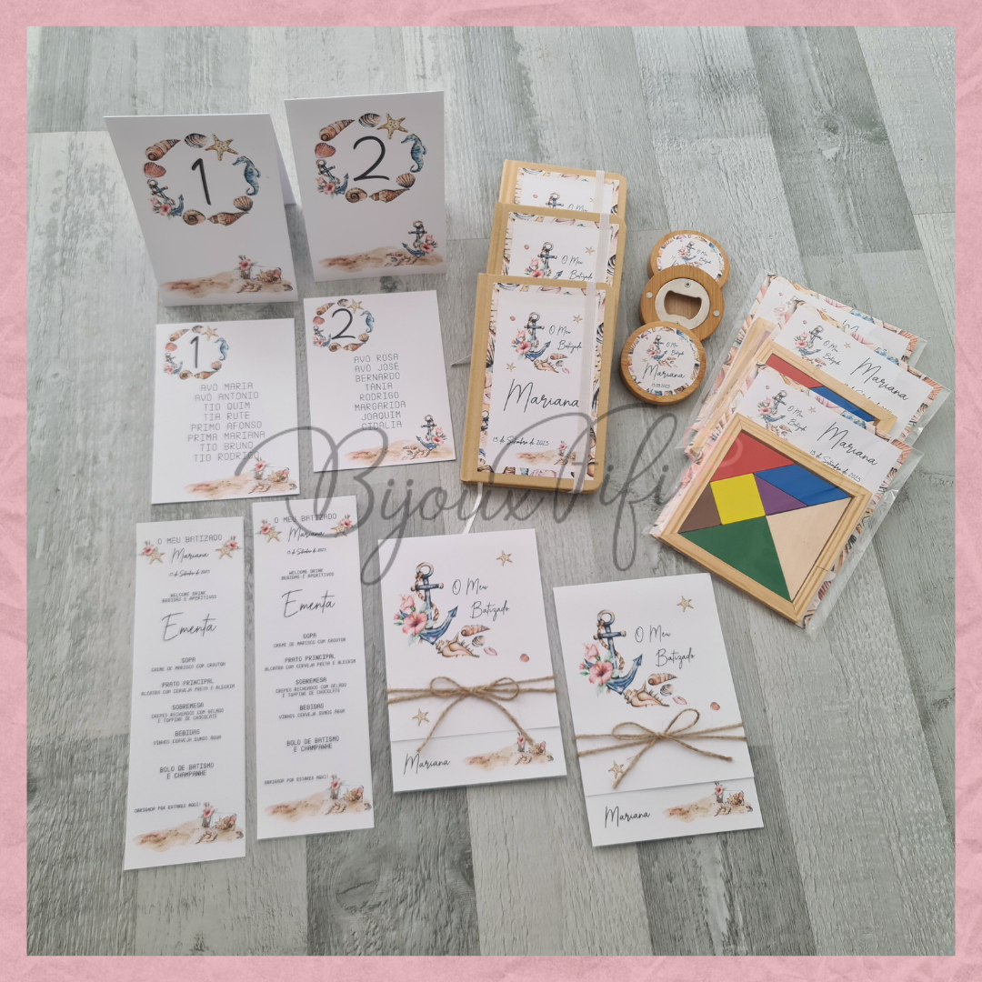 É possível realizar todo o estacionário dentro do tema/cor escolhido, tais como , convites, lembranças, ementas, marcador de mesas e assentos...