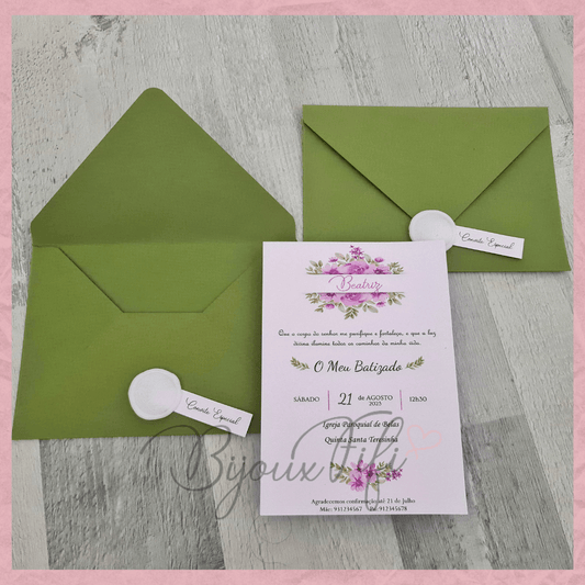 Convite com Envelope/Lacre "Pink Garden" (+cores)