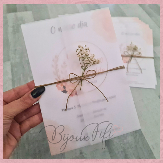 Convite 2 em 1 Translucido "Vintage Peach" (+cores)