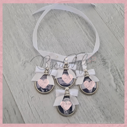 Depois do vestido de noiva, o bouquet é um dos elementos mais importantes do visual da noiva. Mais do que um adorno, o bouquet é um reconhecido amuleto de proteção e, por isso, é muito comum que as noivas componham estes ramos com cuidado, pensando no significado de cada flor... Sendo este arranjo um verdadeiro talismã, é de esperar que todos os acessórios que lhes estejam associados também tenham imenso valor simbólico. Nesta linha, surgem as medalhinhas para os bouquets.