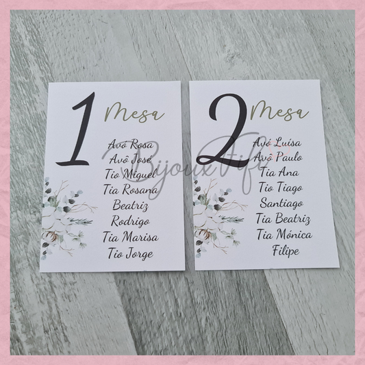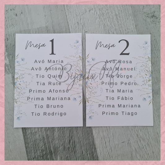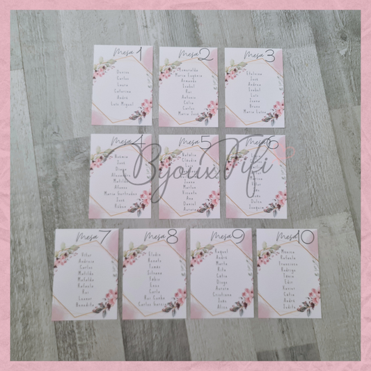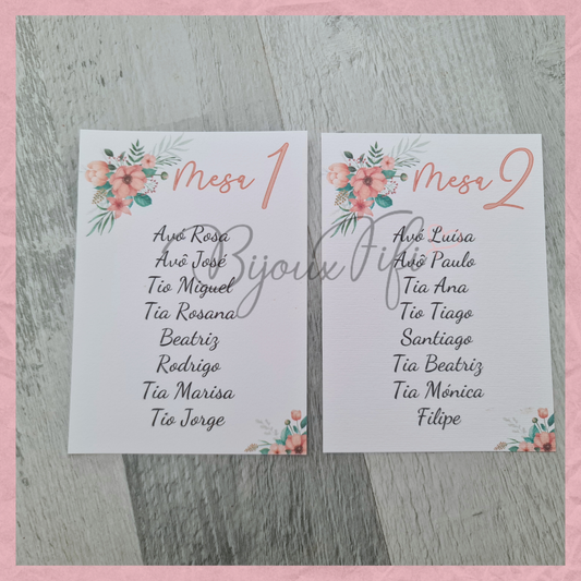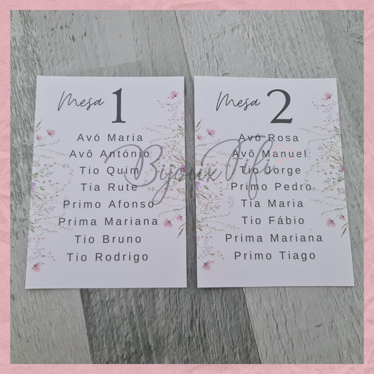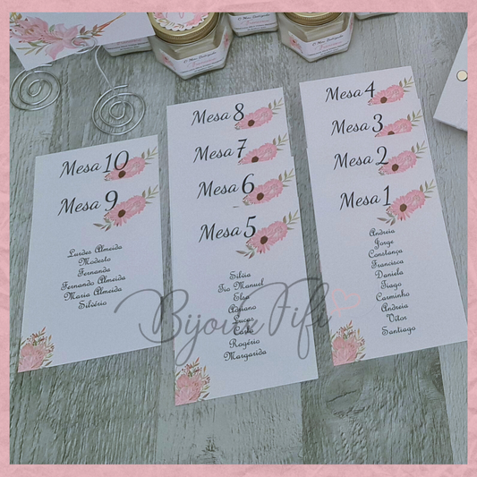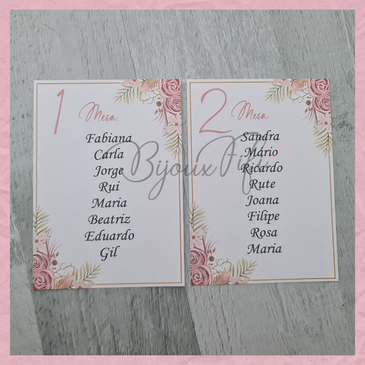 Cartões Seating Plan "Vintage Rose" (+cores)