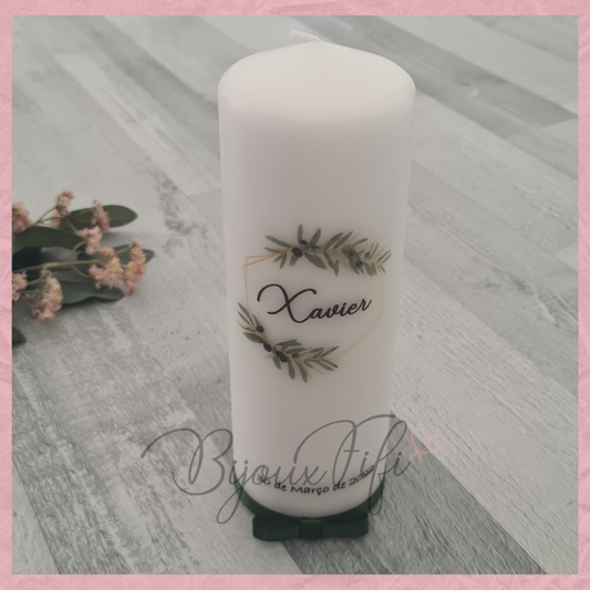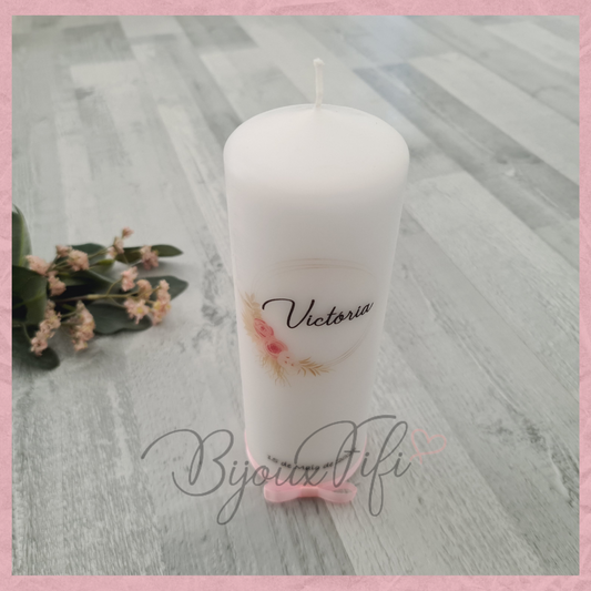 A vela representa o princípio criador: a luz do sol, que dá vida a tudo, e favorece a transmutação das energias, isto é, transforma a energia dos pedidos na concretização dos mesmos, dando-lhes força e calor. É por esse motivo que mesmo os rituais mais simples incluem, quase sempre, uma vela acesa. Cada ano de vida, uma conquista. Cada sopro, um desejo. Esta é uma vela muito especial que pode ser oferecida como prenda de Nascimento de uma criança ou no seu Primeiro Aniversário, é aquele presente que dura e perdura por muitos e longos anos. A vela deve ser acesa a cada aniversário da criança e assim que atinga a idade respetiva deve ser soprada. Esta vela acompanhará a criança desde o Nascimento até à idade adulta, aos seus 18 anos. Tamanho ( Altura: 23 cm e Diâmetro: 7.8 cm ) Um presente muto especial. Para encomendar deve enviar mensagem privada onde deve indicar a cor/modelo pretendido da decoração, nome, data nascimento e/ou uma frase que pode acrescentar por baixo do monograma. Artigo totalmente artesanal feito a gosto. Mais informações não hesitem. Obrigada, Filipa Silva