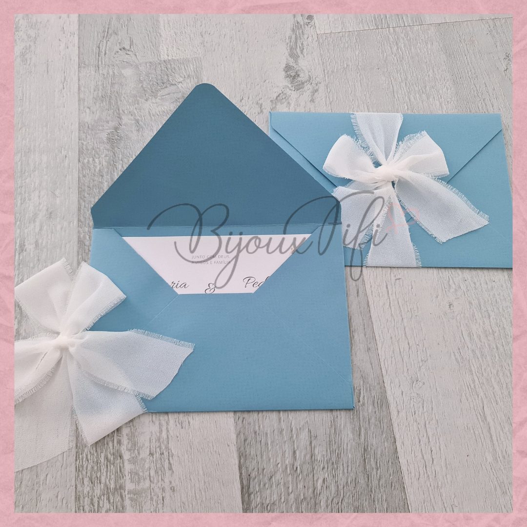 Papel: Envelope= Texturado com alto teor de algodão 160g // Interior=Texturado de um dos lados com 220g