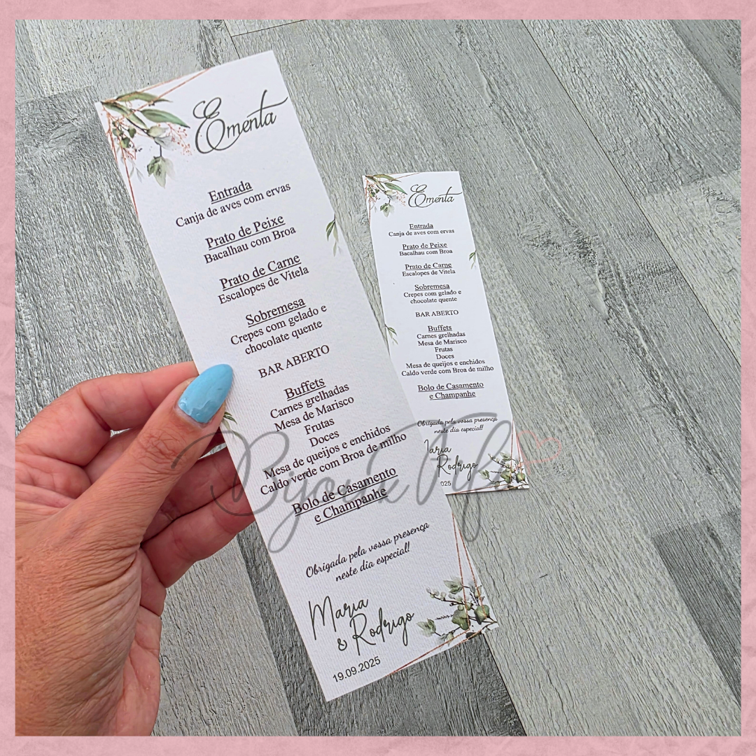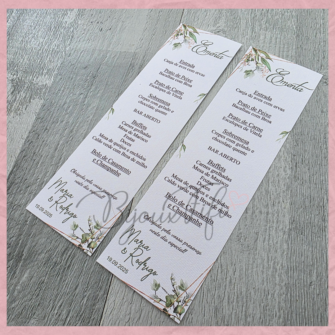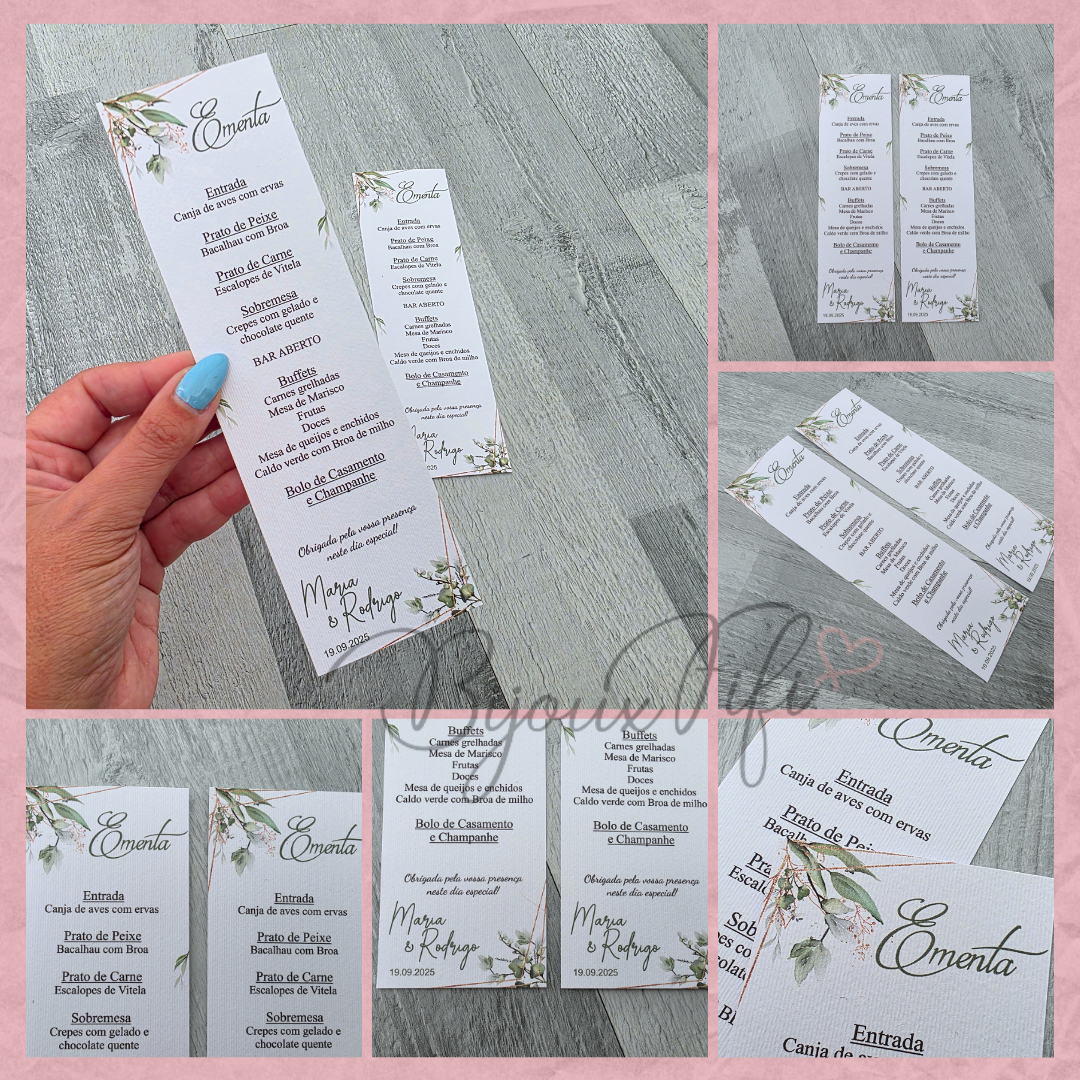 É possível realizar todo o estacionário dentro deste tema, tais como, convites, lembranças, ementas, marcador de mesas e assentos...