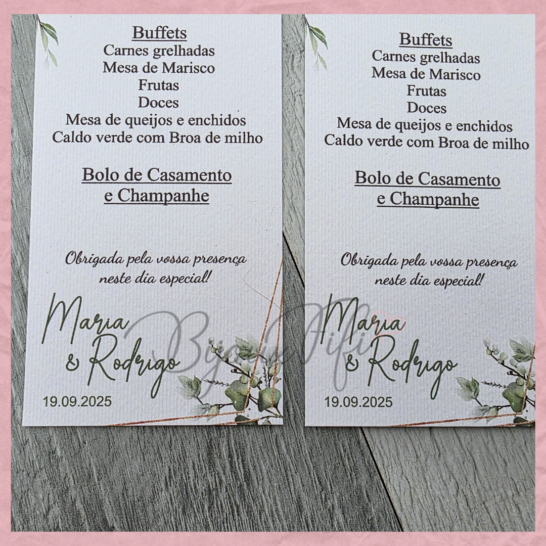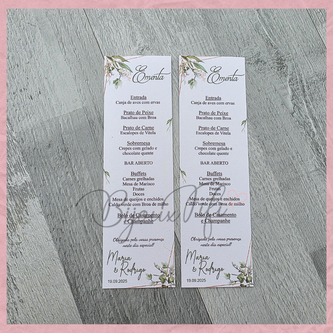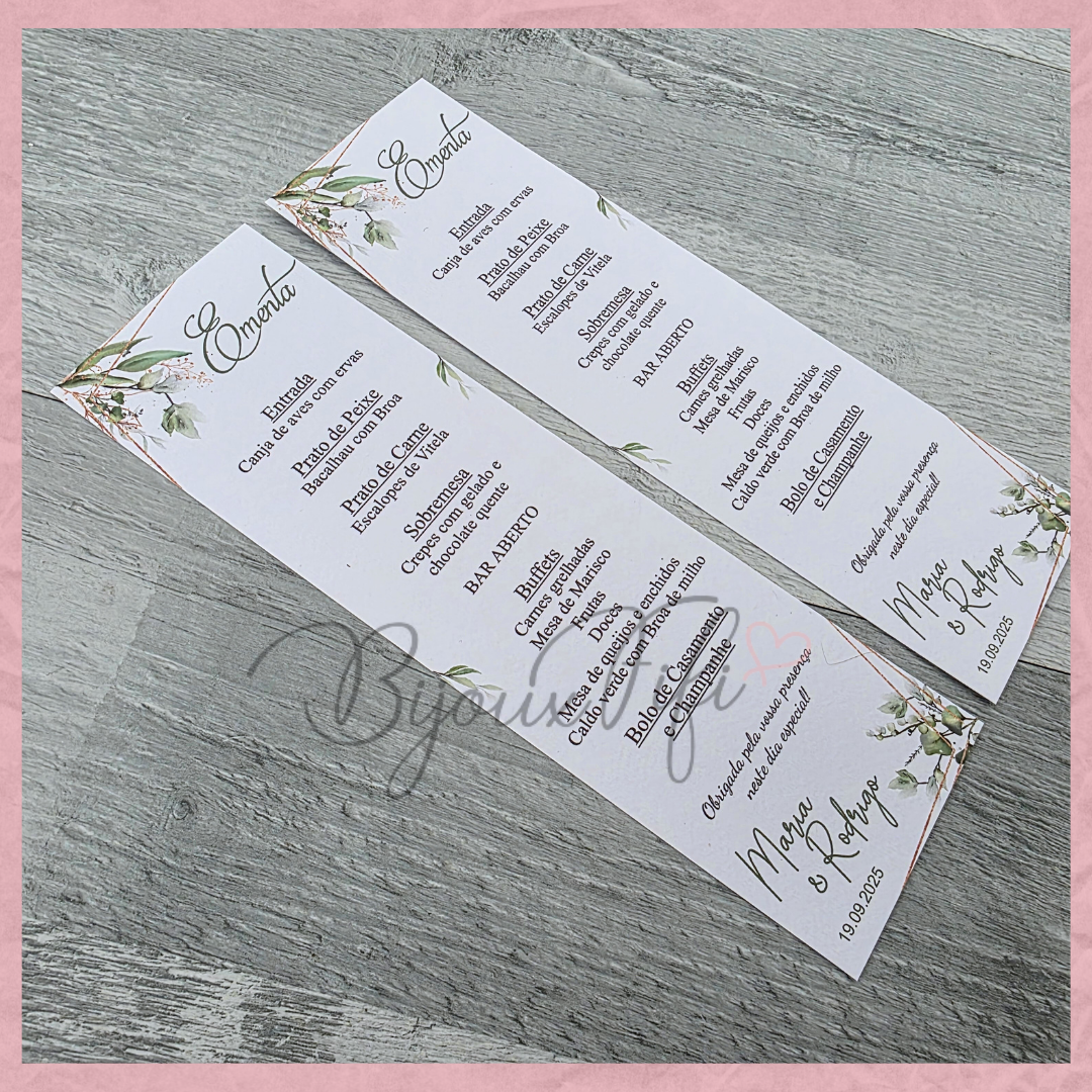 É possível realizar todo o estacionário dentro deste tema, tais como, convites, lembranças, ementas, marcador de mesas e assentos...