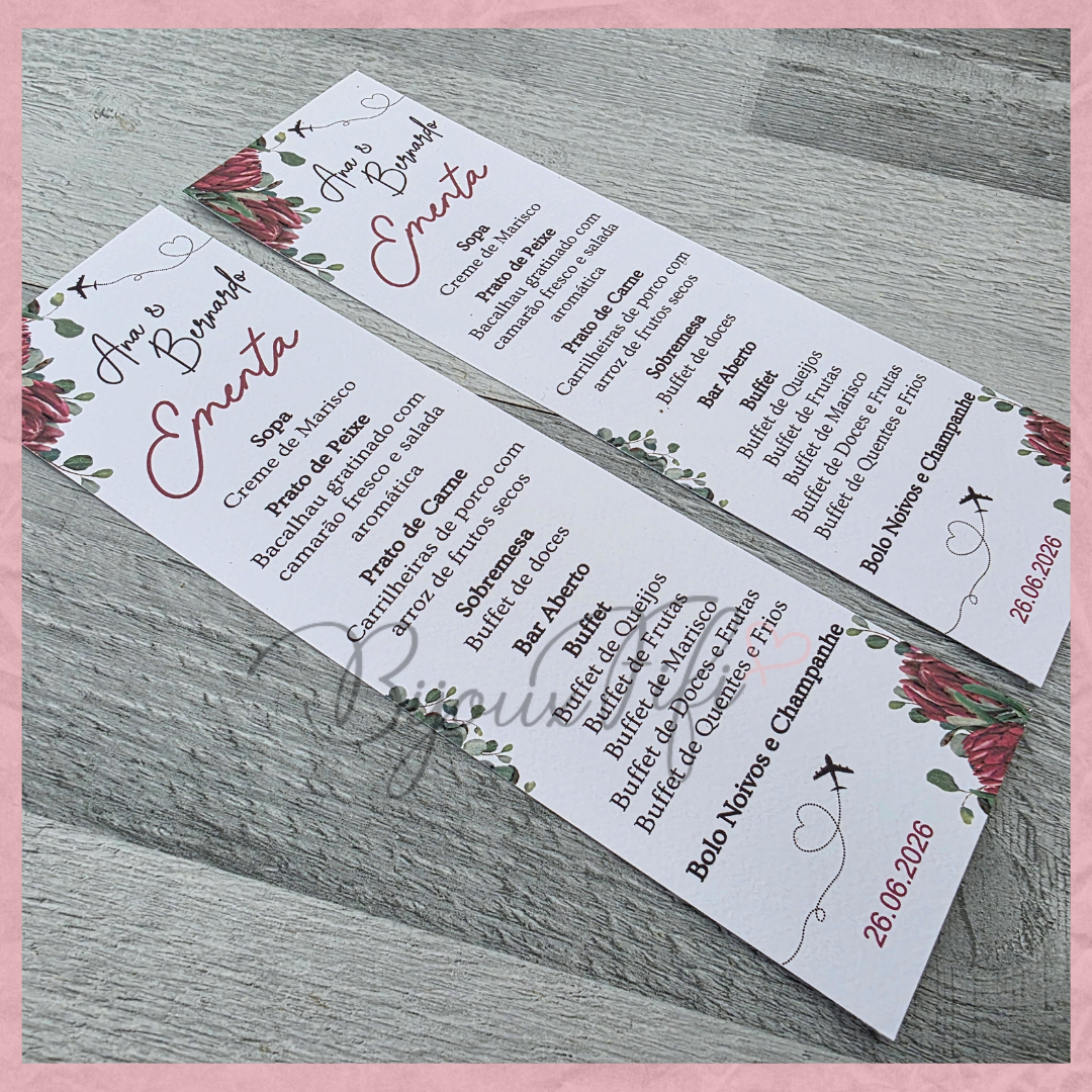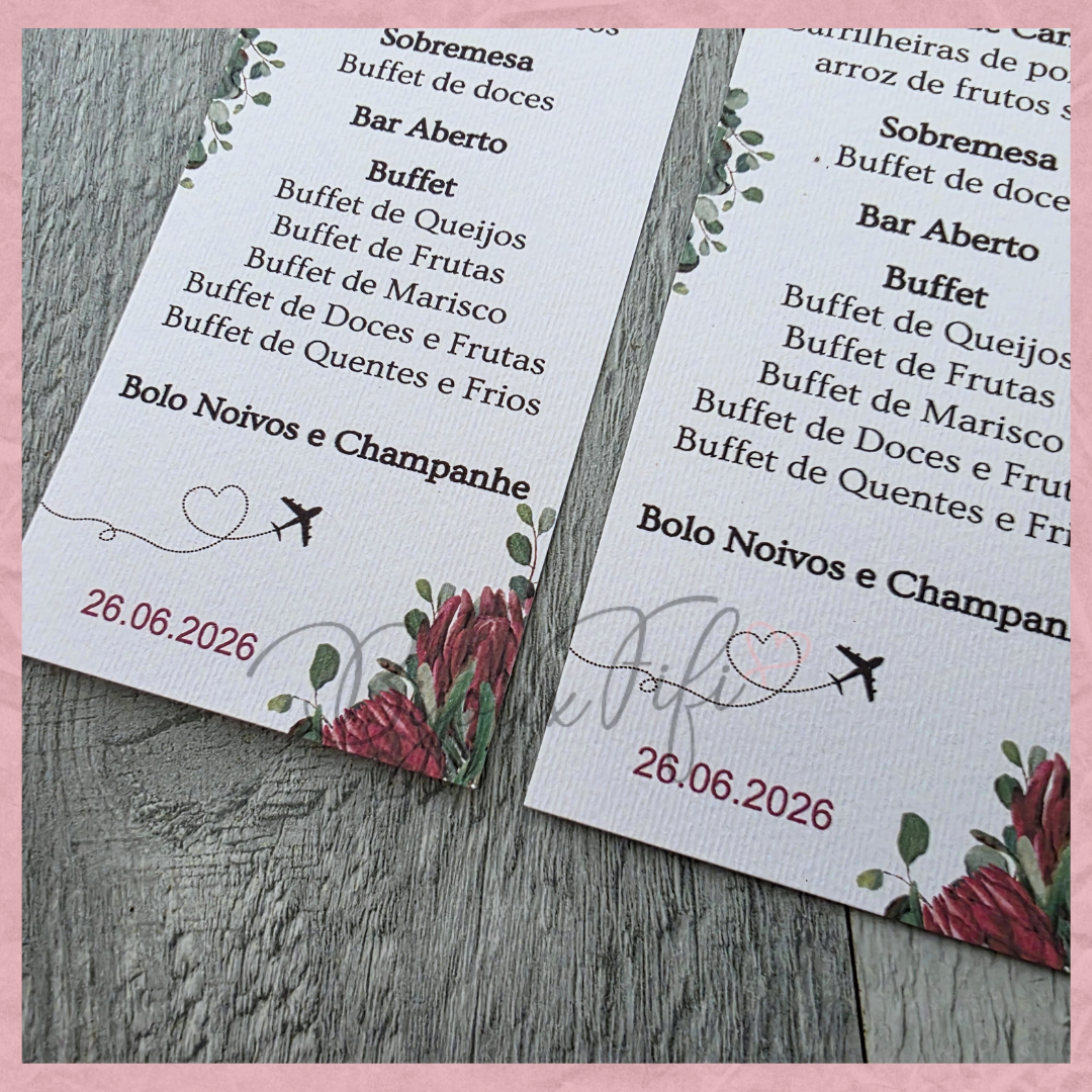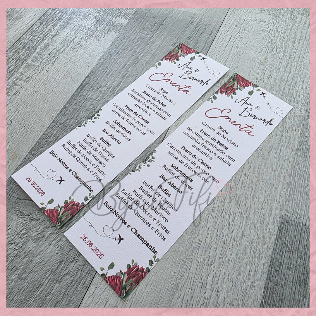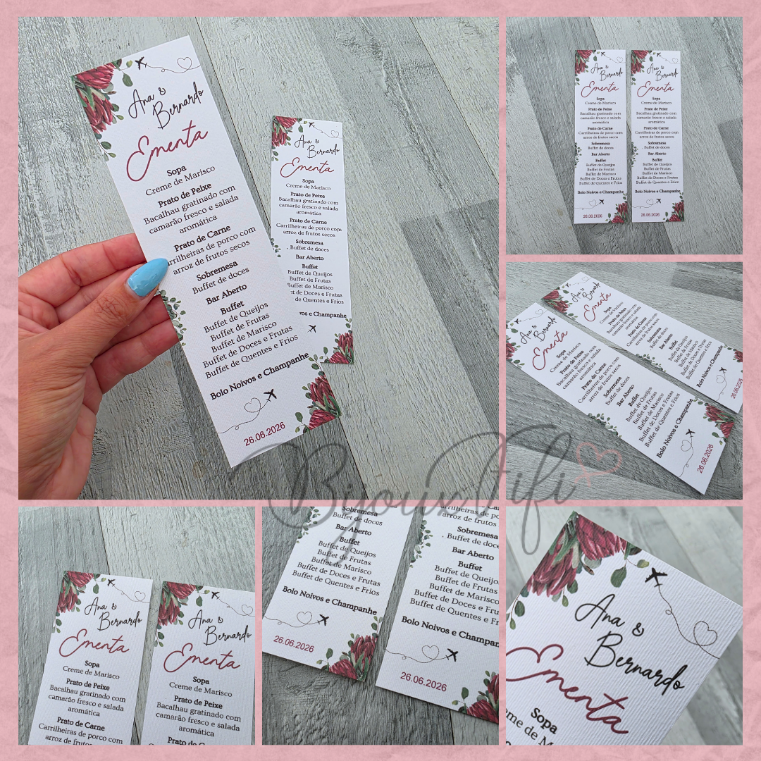 É possível realizar todo o estacionário dentro deste tema, tais como, convites, lembranças, ementas, marcador de mesas e assentos...