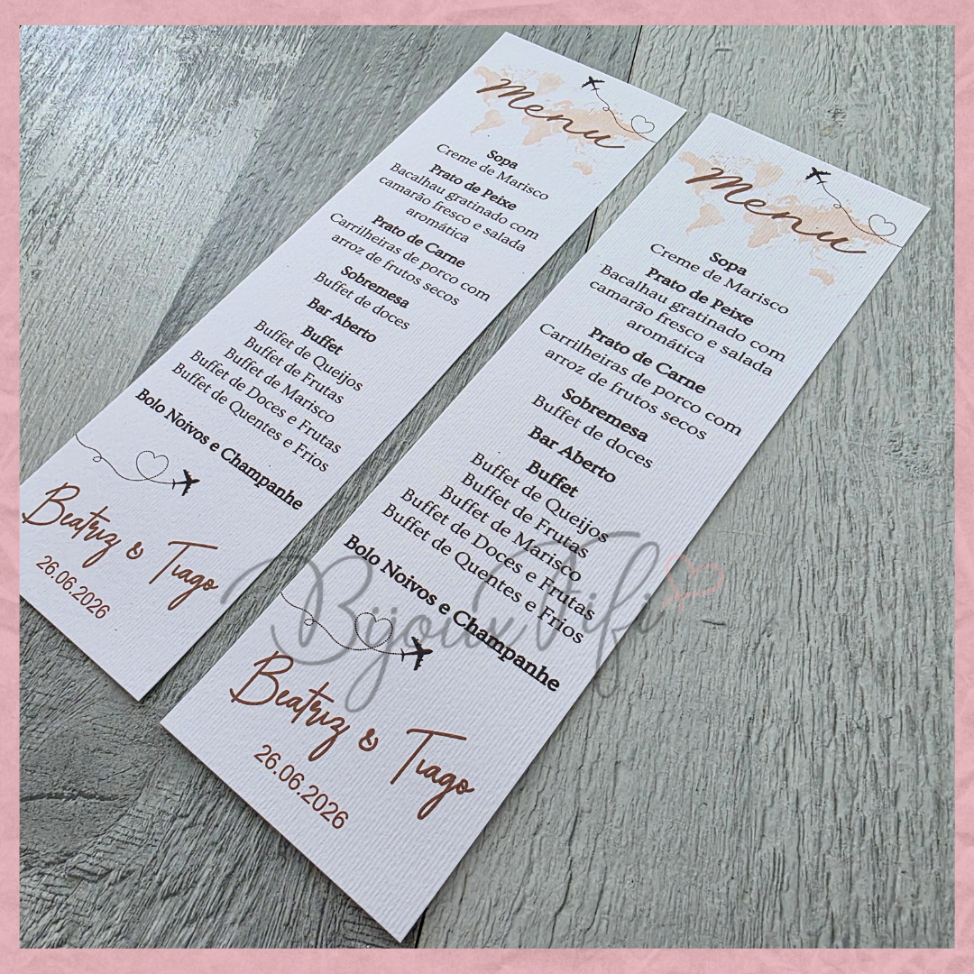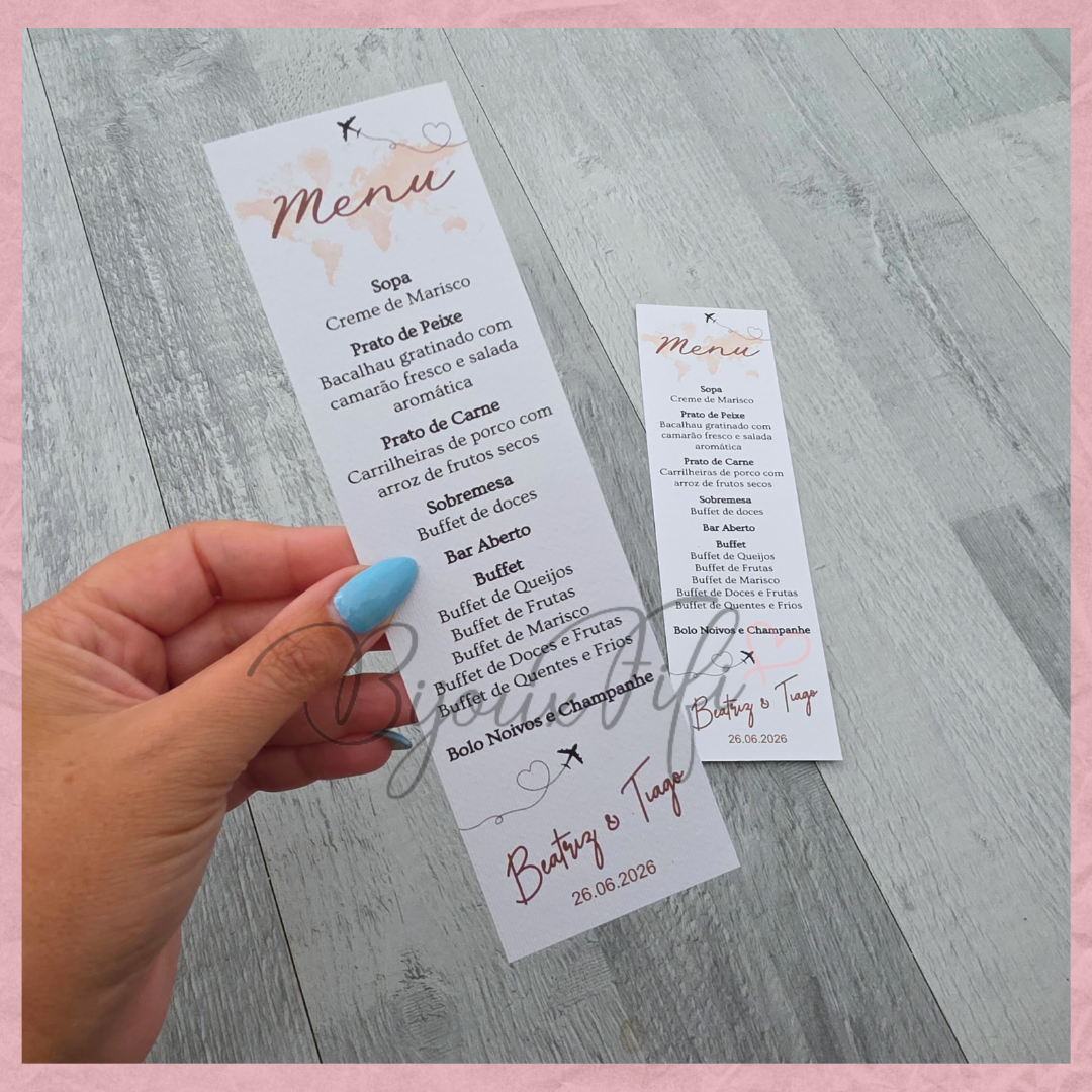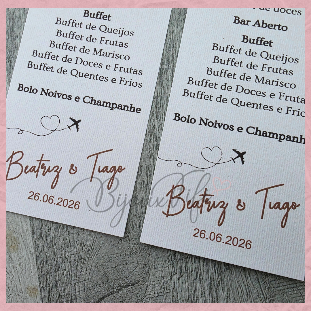 É possível realizar todo o estacionário dentro deste tema, tais como, convites, lembranças, ementas, marcador de mesas e assentos...