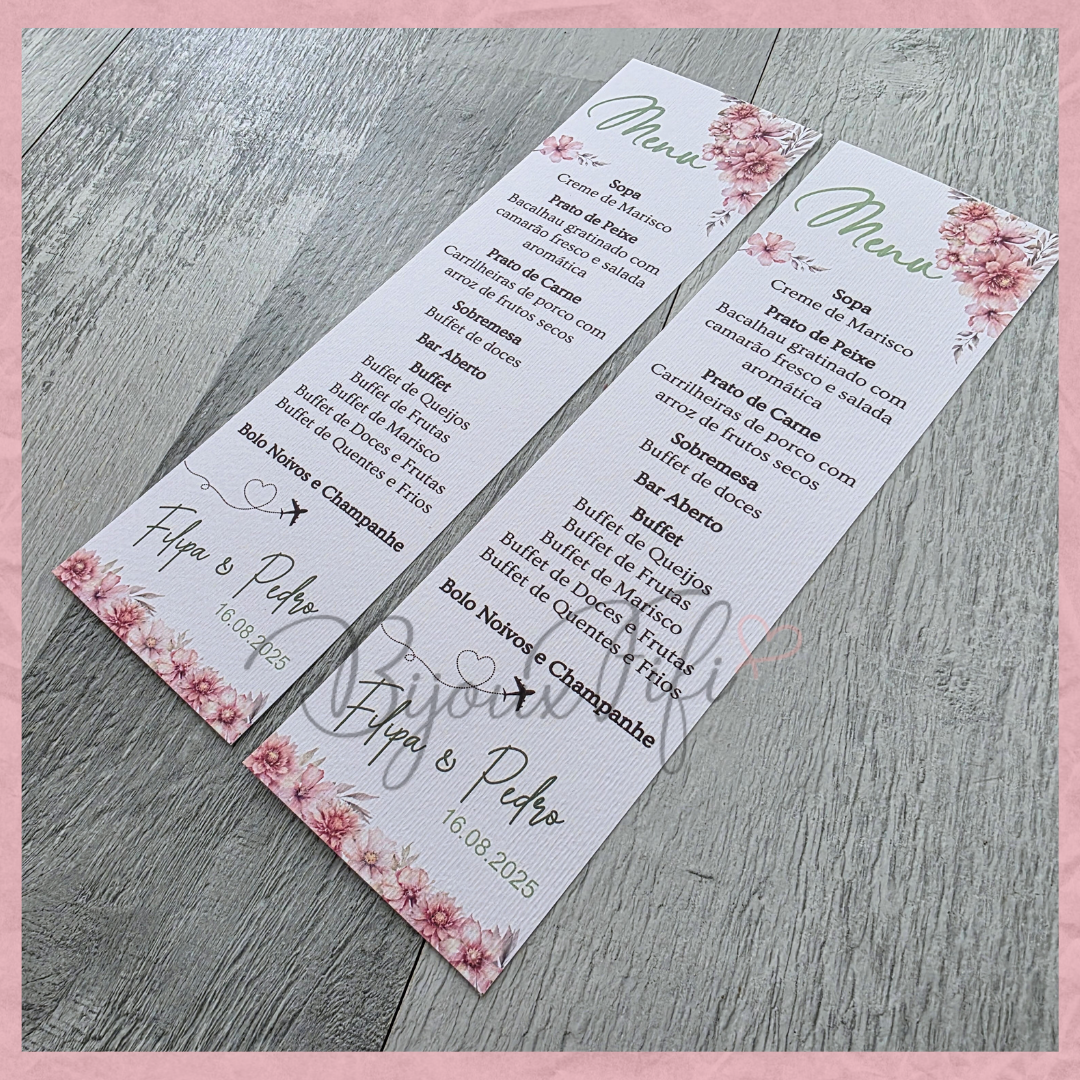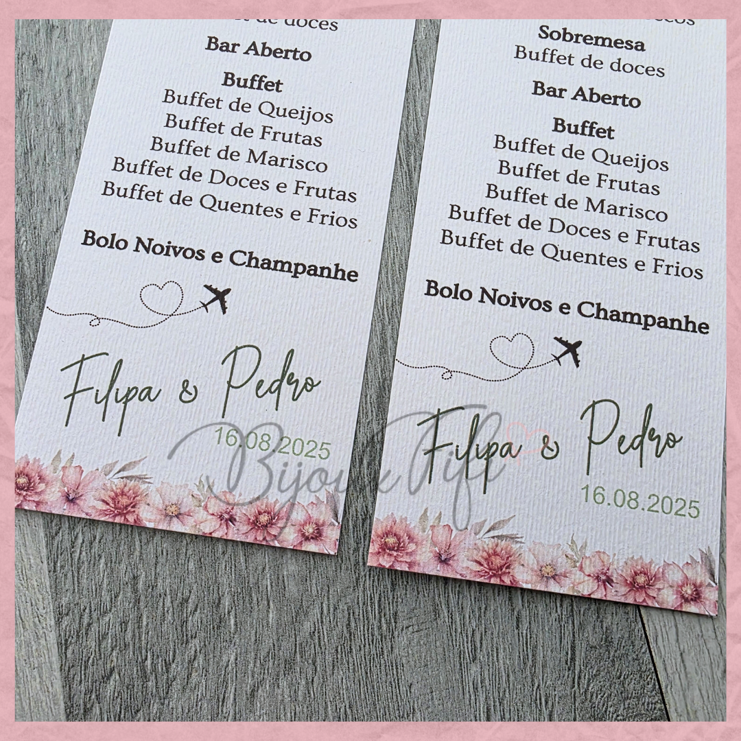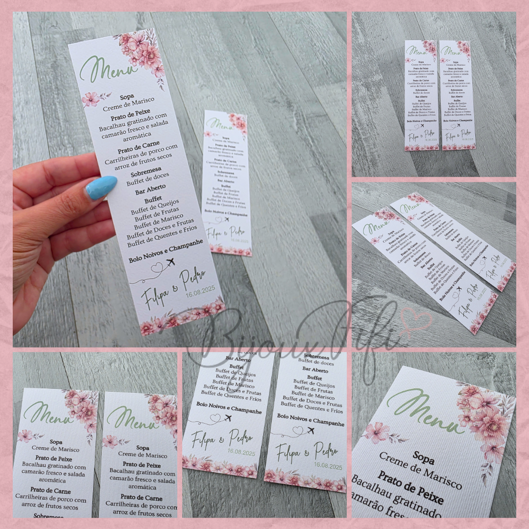 É possível realizar todo o estacionário dentro deste tema, tais como, convites, lembranças, ementas, marcador de mesas e assentos...