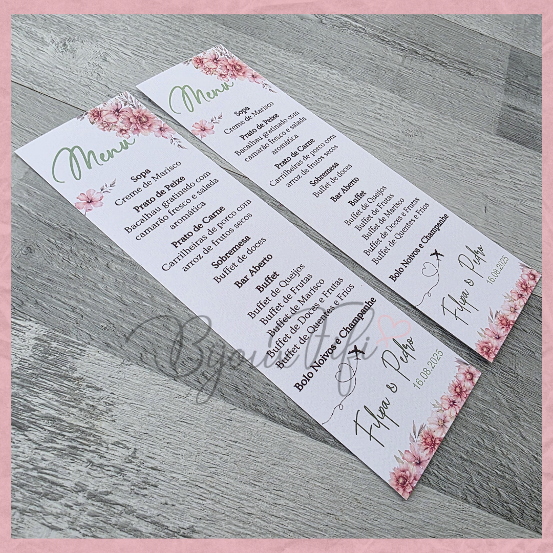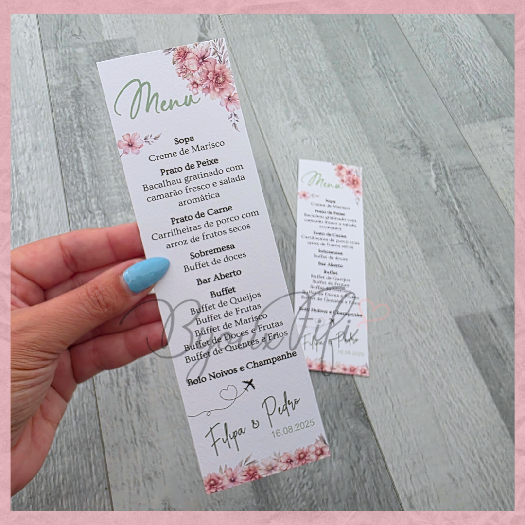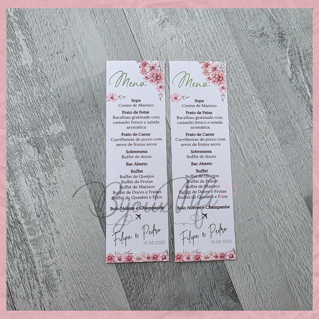 É possível realizar todo o estacionário dentro deste tema, tais como, convites, lembranças, ementas, marcador de mesas e assentos...