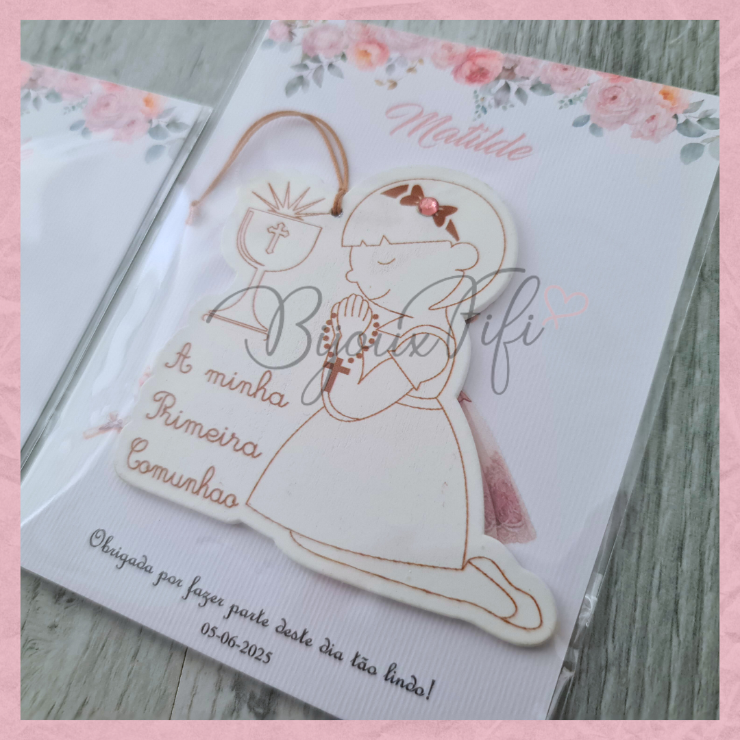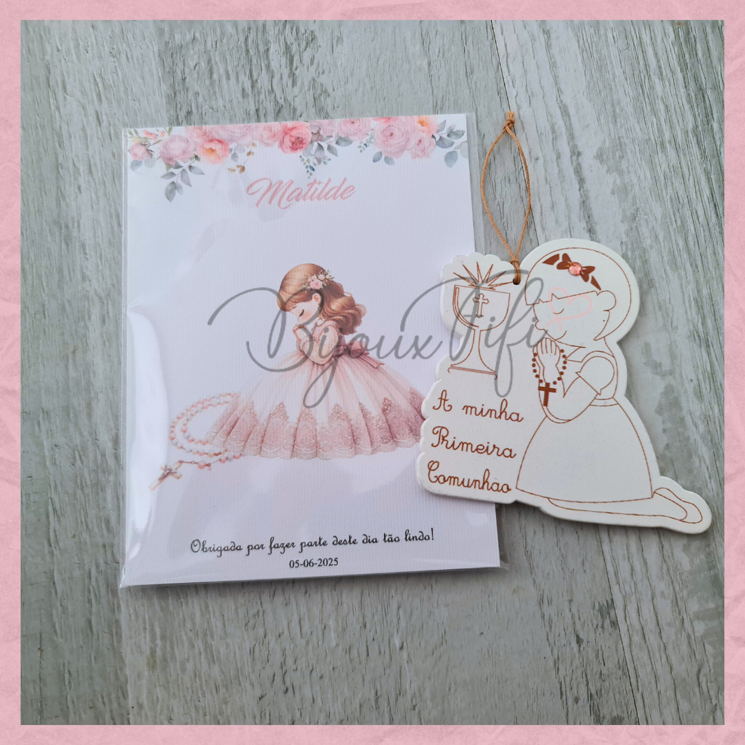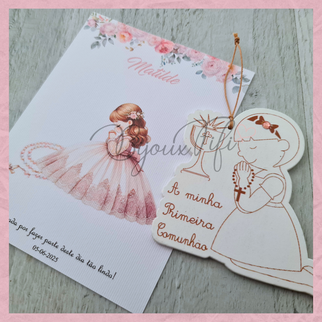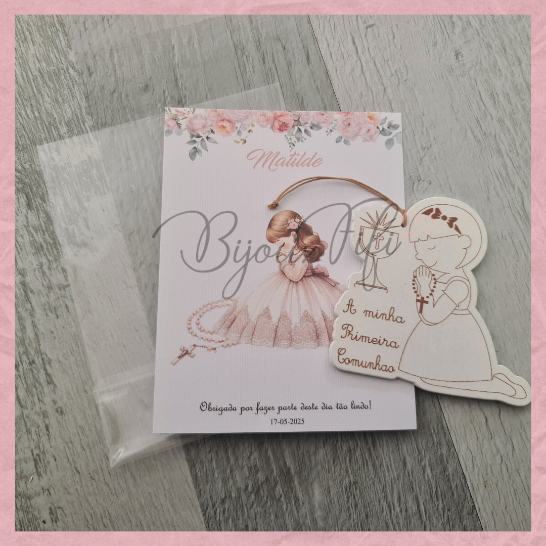 Menina 1º Comunhão com cartão personalizável