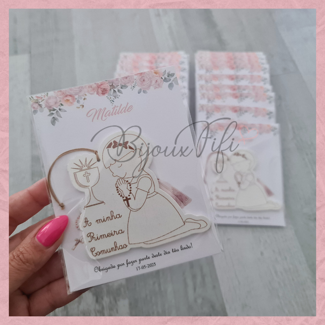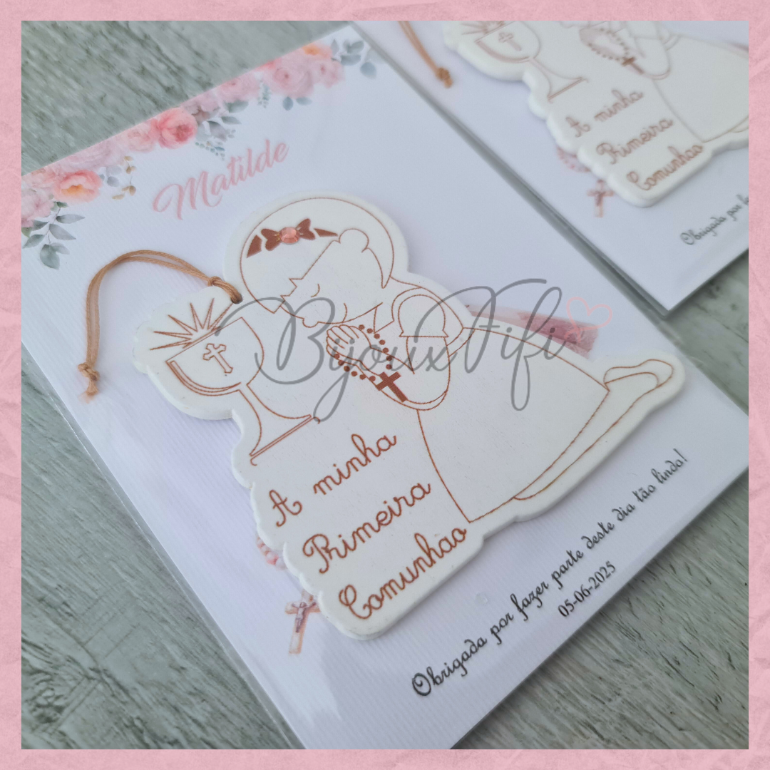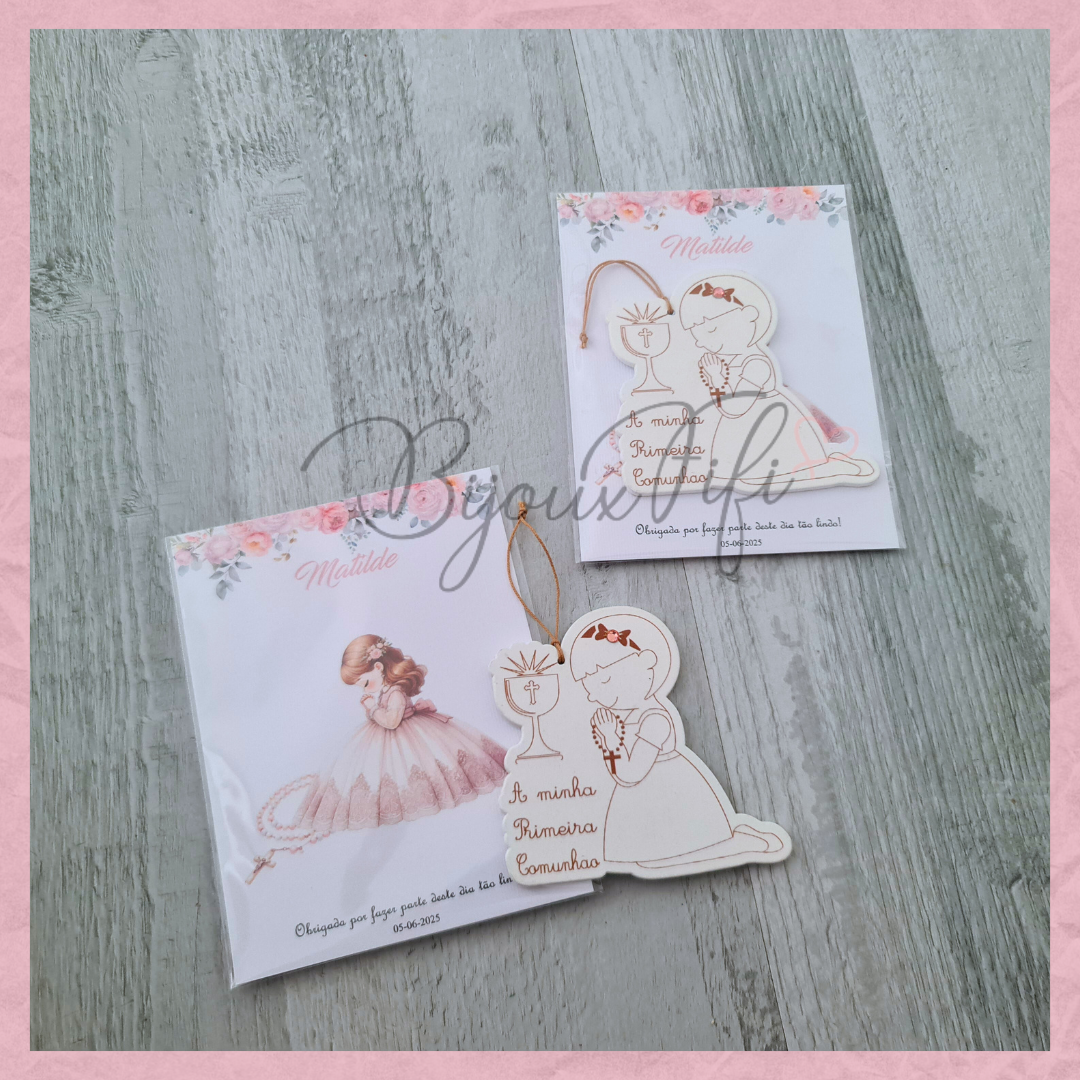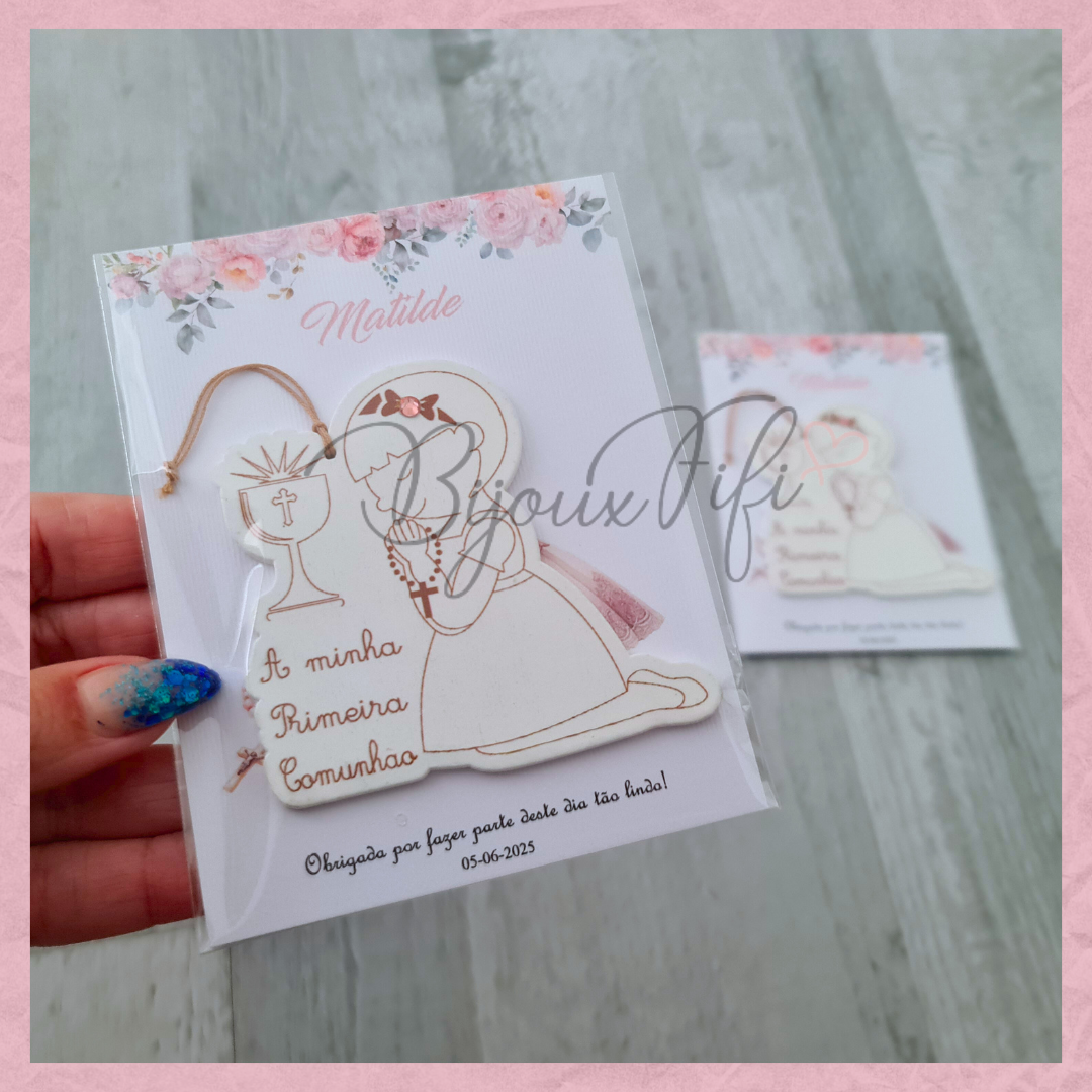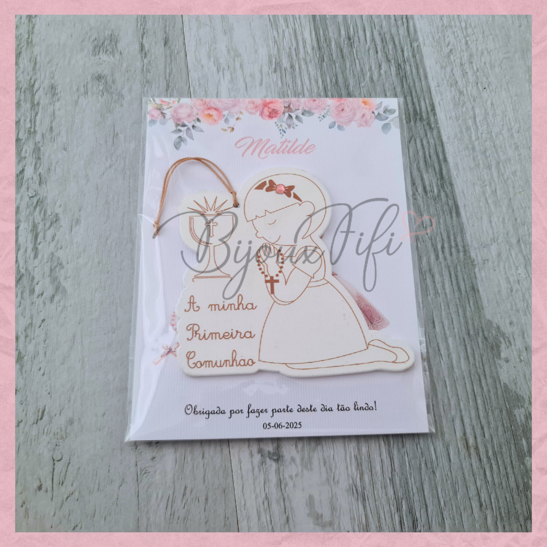 Menina 1º Comunhão com cartão personalizável