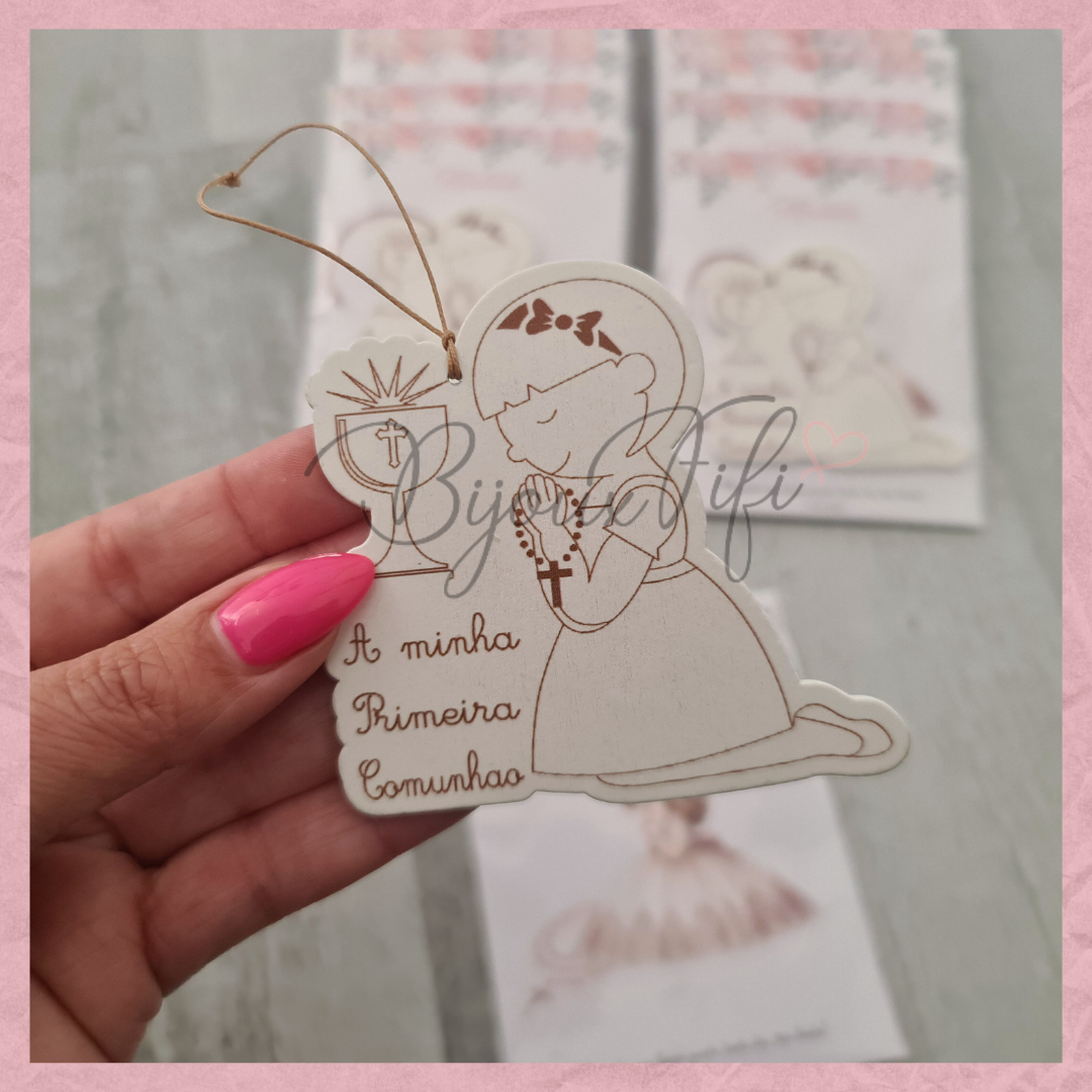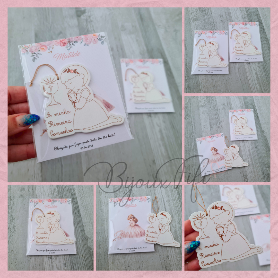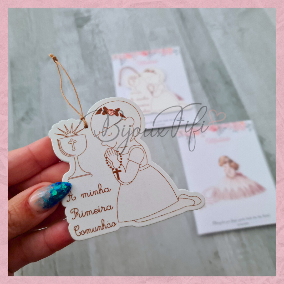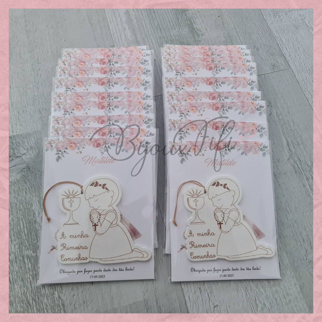 Menina 1º Comunhão com cartão personalizável