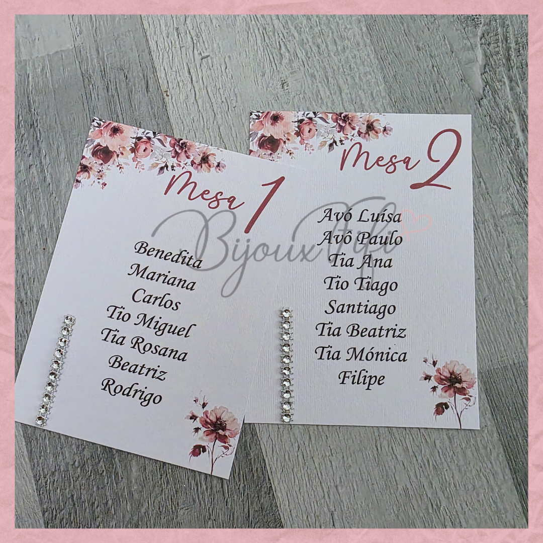 Cartões Seating Plan "Dark Pink"