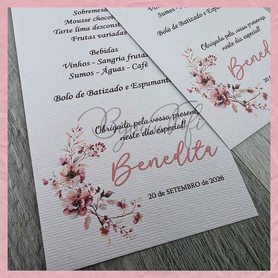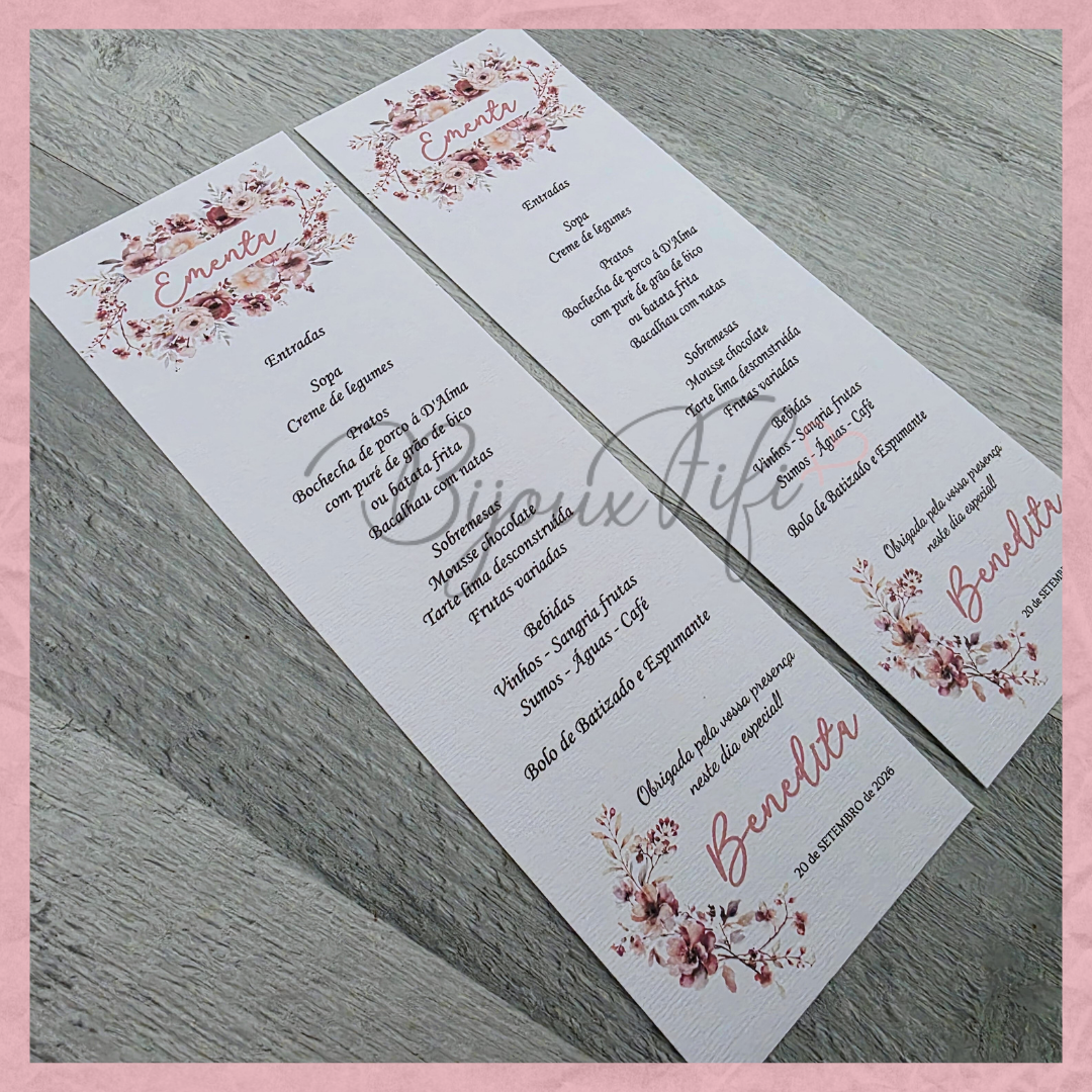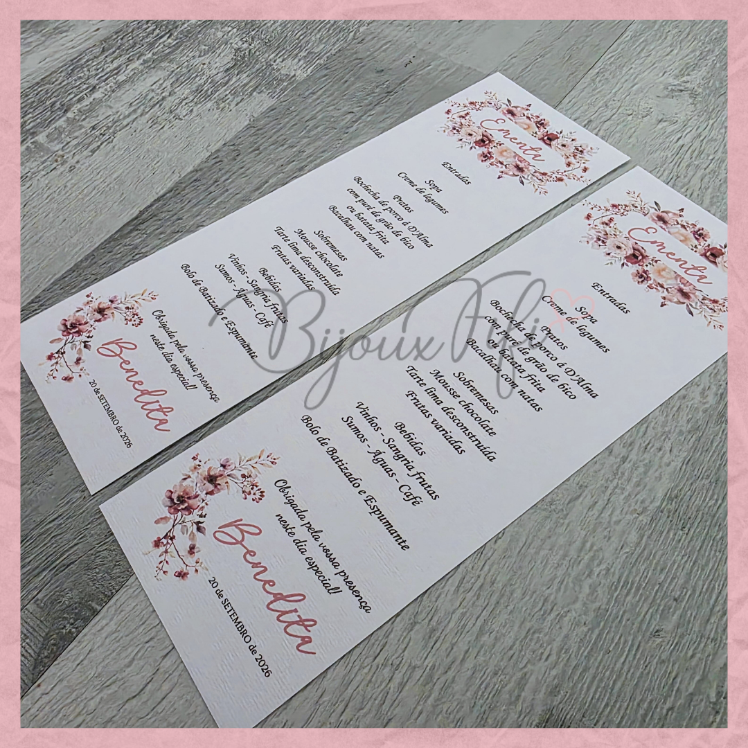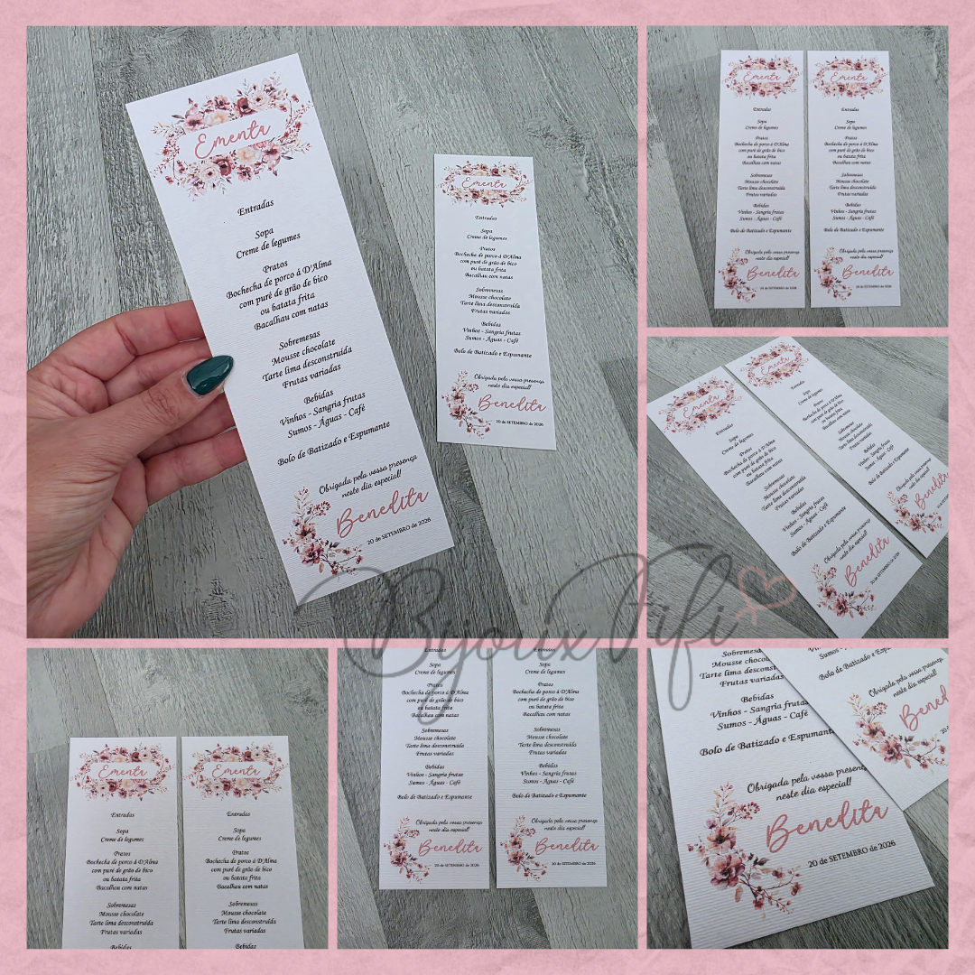 É possível realizar todo o estacionário dentro deste tema, tais como, convites, lembranças, ementas, marcador de mesas e assentos...