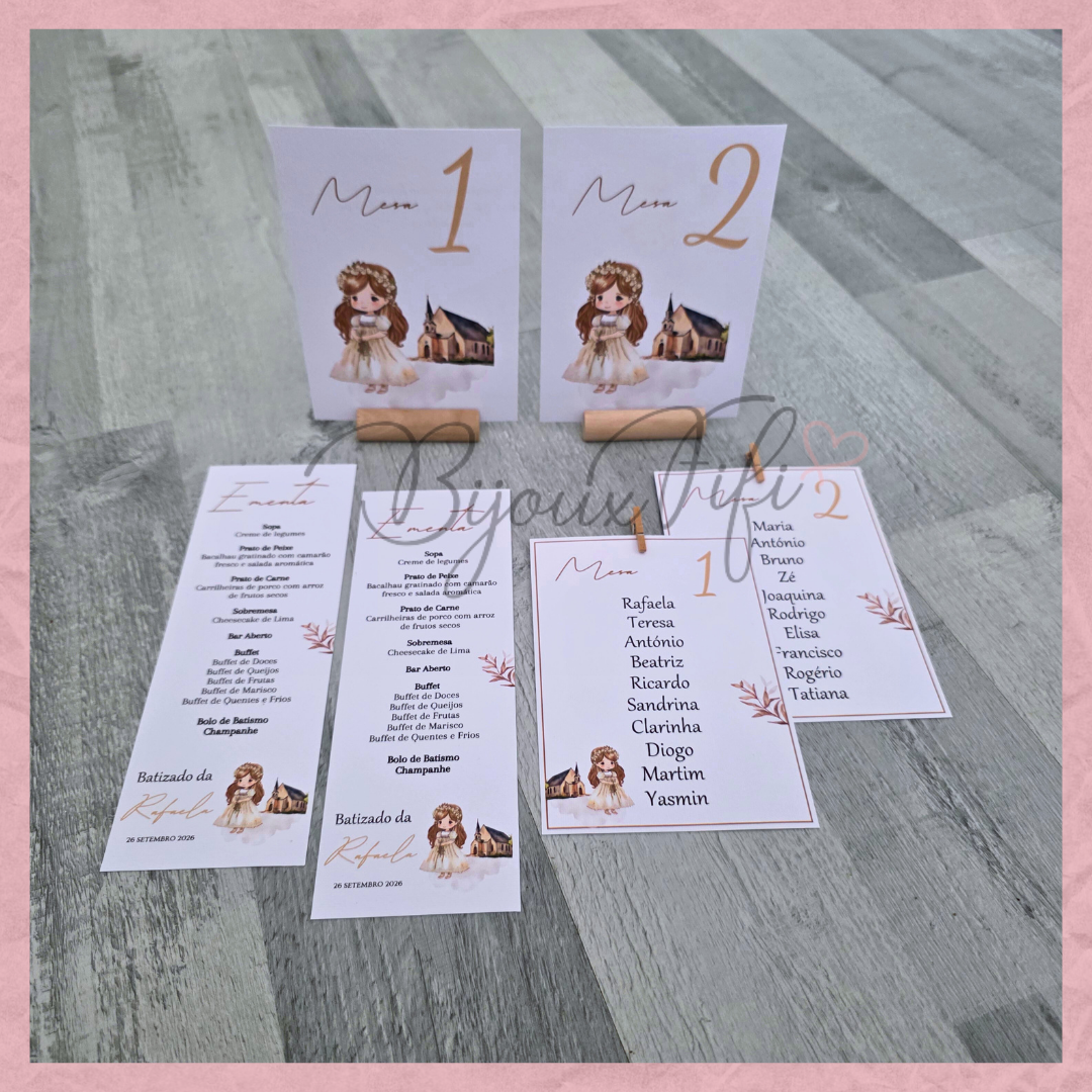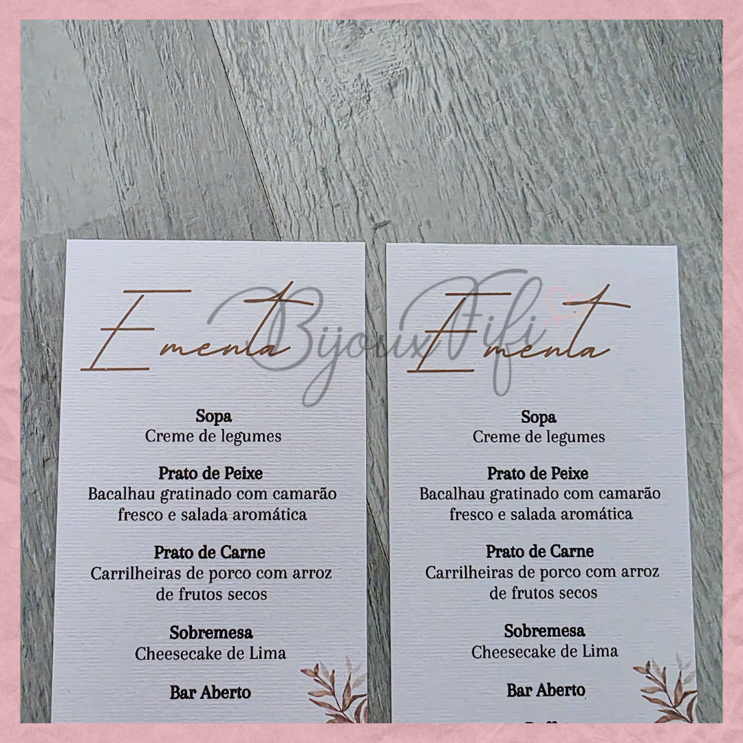 É possível realizar todo o estacionário dentro deste tema, tais como, convites, lembranças, ementas, marcador de mesas e assentos...