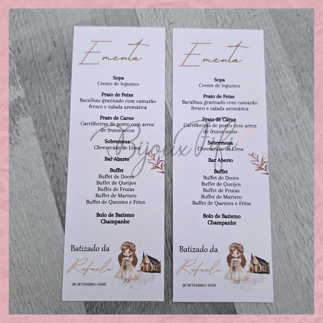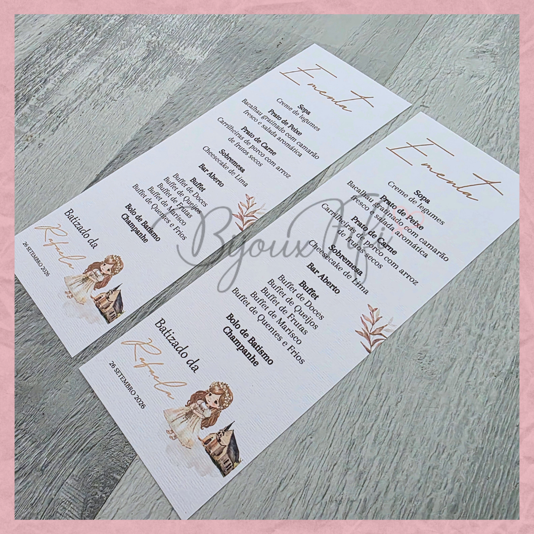 Cardápio (se ainda não tiver no ato da encomenda por ser com antecedência de modo a garantir a sua vaga, não há problema, desde que 20 dias antes faça-a chegar para o email encomendas@bijouxfifi.pt baixe o nº da encomenda)