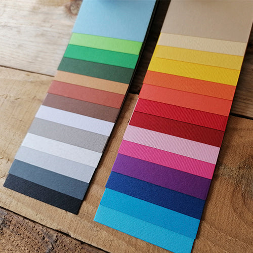 - Colorida em massa (processo de coloração da pasta de papel com o qual se consegue maior homogeneidade e durabilidade das cores, o que a diferencia das cartolinas impressas).