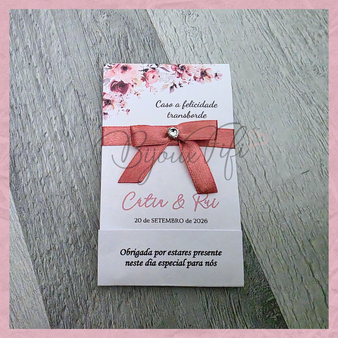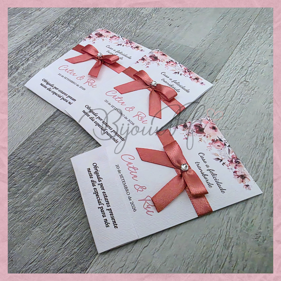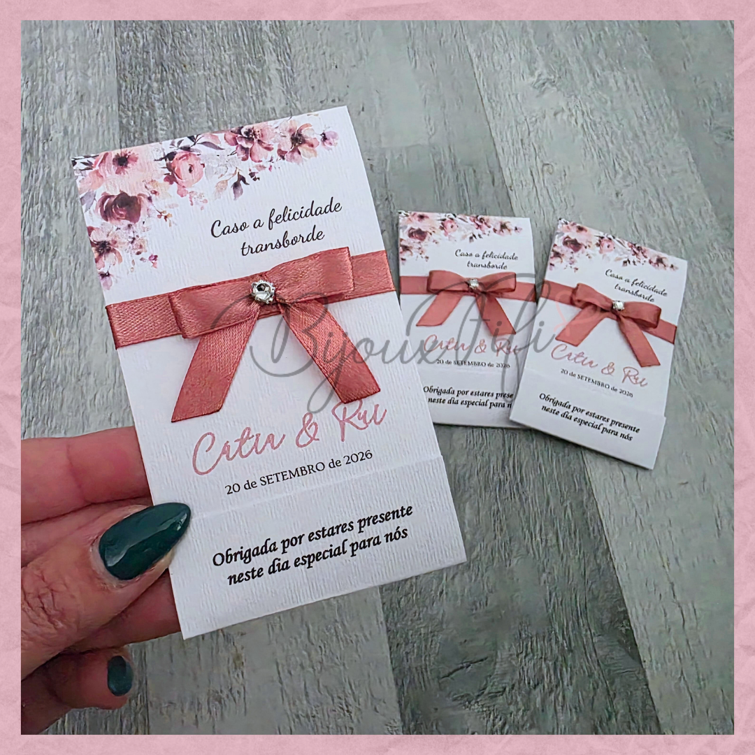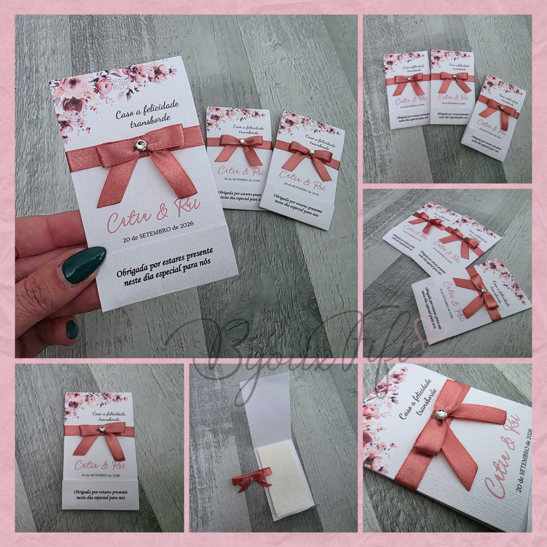 É possível realizar todo o estacionário dentro deste tema, tais como, convites, lembranças, ementas, marcador de mesas e seating...