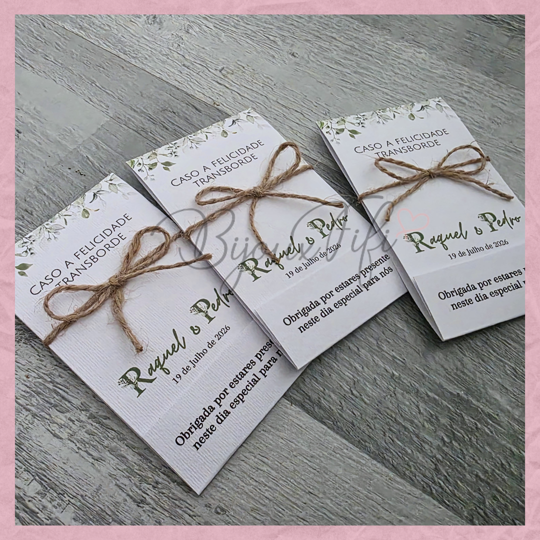 É possível realizar todo o estacionário dentro deste tema, tais como, convites, lembranças, ementas, marcador de mesas e seating...