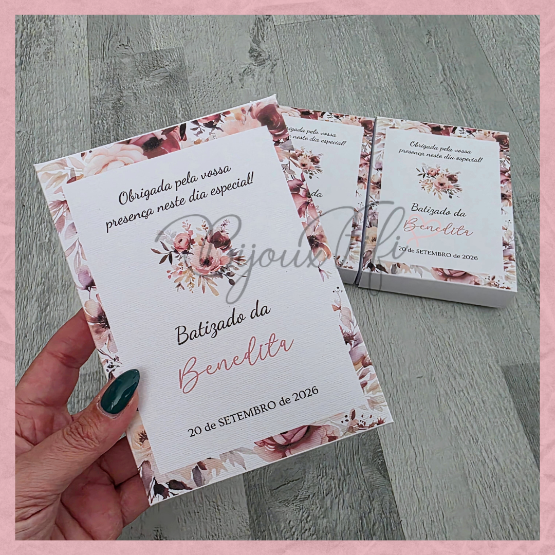 É possível realizar todo o estacionário dentro do tema/cor escolhido, tais como, convites, lembranças, ementas, marcador de mesas e assentos...