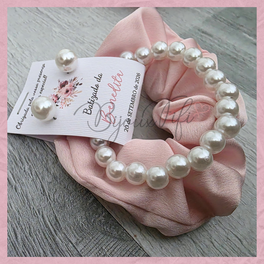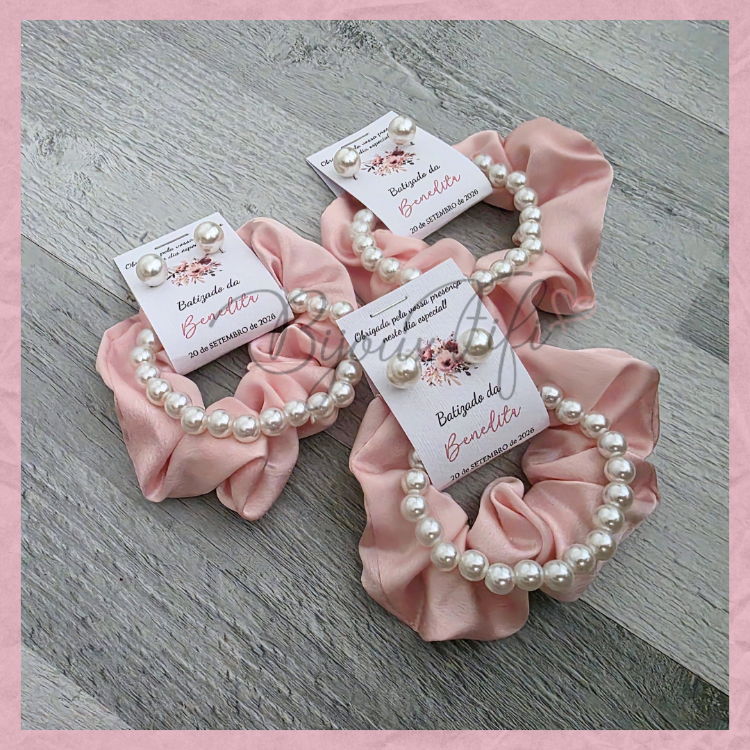 Pack Scrunchie +Pulseira + Brincos "Dark Pink"